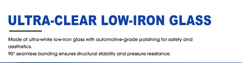- Ultra-Clear Super White Glass provides unmatched transparency and light transmission for vibrant aquatic displays.