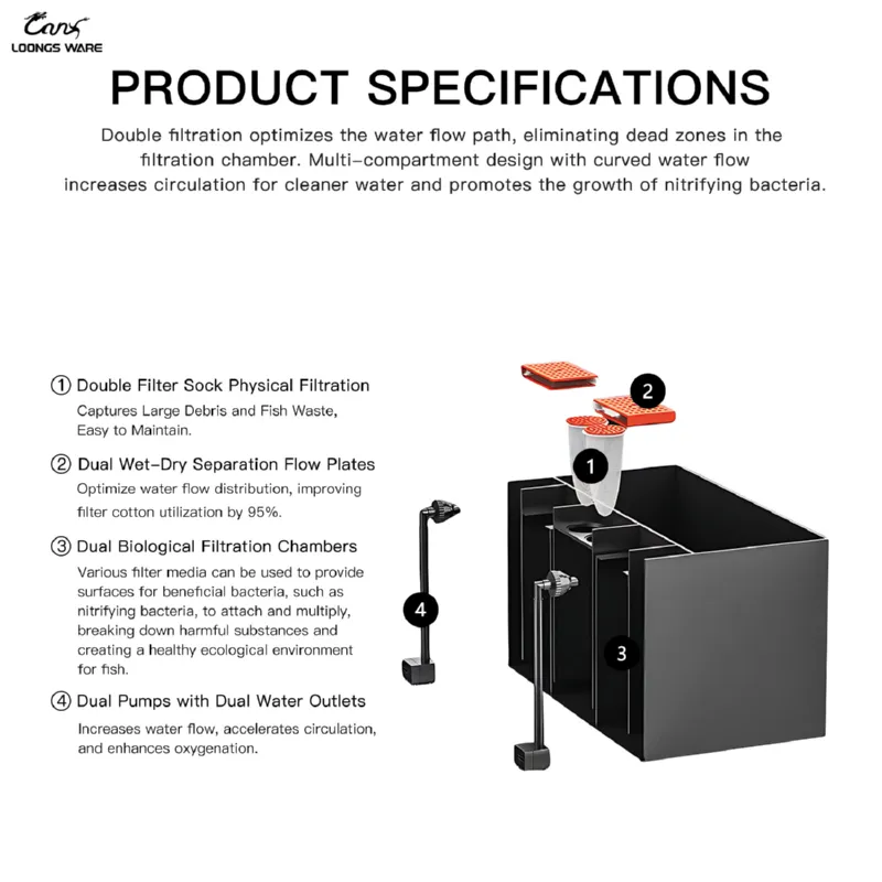 LOONGS WARE, founded in 2007, specializes in the R&D, design, and manufacturing of premium ecological aquariums and aquatic equipment. We are committed to integrating natural ecological aesthetics into modern residential and commercial spaces. Our products are crafted with eco-friendly materials such as ultra-clear glass and acrylic. Flagship solutions include built-in aquariums, ultra-narrow stream tanks, and Koi floor-standing ponds, designed to meet the diverse needs of home décor, commercial interior design, and professional aquaculture projects. With patented technologies—such as the ultra-narrow side overflow filtration system and integrated cabinet structures—combined with tailored design services, LOONGS WARE has delivered customized ecological aquarium solutions to more than 5,000 clients worldwide.